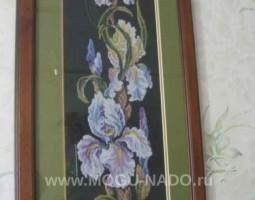 Описание: Недавно закончила оформление картины , ирисы на черном фоне смотрятся очень эффектно!
