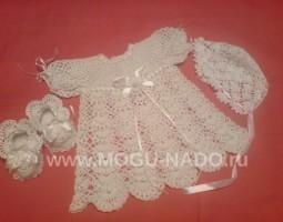 В крестильный комплект входит: платье, пинетки, чепчик на голову.
