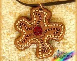 Описание: Материалы - пластика, бисер, красный стеклянный камень, замшевый шнур
