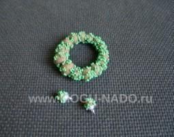 Браслет и серьги. Валеная шерсть и бисер. На резинке. Радует глаз.Комочки, а на них нежные зеленые шишечки.Как будто из земли маленькие росточки пробиваются, для того чтобы жить.