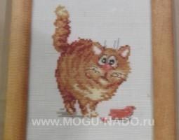 Описание: Вышитая крестом небольшая картинка "КОТ-воришка"