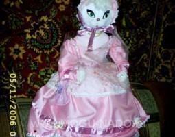 Описание: Мягкая игрушка кошка Маркиза, высота 70 см., играбельна: вся одежда снимается, в сумочке расческа и зеркальце. Предназначена для девочки 4-7 лет. Цвет одежда и самой кошки можно подобрать на ваше усмотрение.