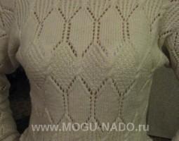 Описание: Белый свитер, свободной вязки, элегантен и привлекателен. Изготовлен из пряжи: 50% акрила, 50% шерсти.