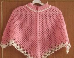 Описание: Пончо для девочки 5-7 лет. Выполнено крючком, пряжа акрил розового цвета