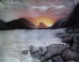 Картина из шерсти - Закат.