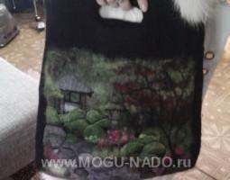 Выполнена в техниках; сухого и мокрого валяния, а так же, в авторской технике выкладывания рисунка.