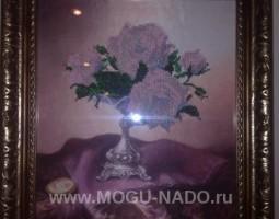 Описание: Картина нарисована на ткани. цветы вышиты бисером.