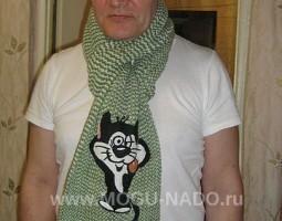 Описание: Шарф связан спицами.Аппликация - ручная вышивка гладью.