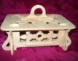 Описание: Шкатулка умещается на ладошке. 4 х 10 см (без учета выступающего декора). Материал - фанера. Разбирается. Собрана без клея.
