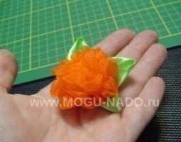 Описание: брошь выполнена из капроновой ленты,листики из атласной.Возможно выполнение в другом цвете
