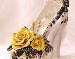 Описание: Туфельки- игольницы из фарфора ручной лепки . роспись золотом.