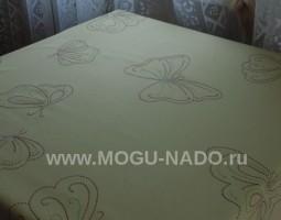 Описание: Скатерть нежно оливкового цвета. Ткань хлопок со специальной пропиткой. Размер 155*140. На скатерти вышито 12 разных бабочек. Скатерть дарит весеннее настроение круглый год.