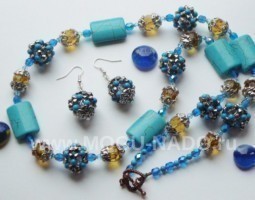 - Бусы и серьги "Небесные цветы"