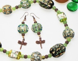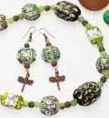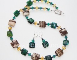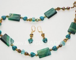 - Бусы и серьги"Изумрудное сердечко"